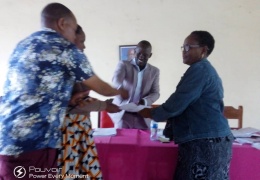 MWENYEKITI WA BARAZA LA WAFANYAKAZI LA HALMASHAURI (W) ITILIMA BI. ELIZABETH GUMBO AKIPOKEA MKATABA KUTOKA KWA AFISA KAZI KUTOKA OFISI YA WAZIRI MKUU SERA,URATIBU ...